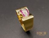 Bague Tank Or Jaune Diamants Rubis Verneuil