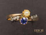 Bague Toi et Moi Perle Saphir XIXe