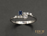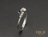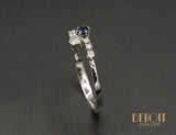 - Pierre : Saphir ~0,20 ct / diamant central ~0,12 ct / pavage diamants ~0,10 ct