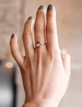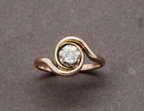 Solitaire tourbillon vintage de la fin du XIXe siècle en or rose 750/1000e, avec en son centre un diamant taille ancienne estimé à environ 0,30 carat serti sur un chaton 8 griffes en platine.