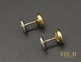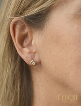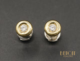 Paire de puces d'oreilles en or jaune 750 millièmes serties de Diamants taille brillant sur 4 griffes entouré d'un cercle donnant une impression de clos. Système pour oreilles percées avec fermoir alpas en or blanc.