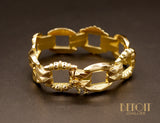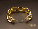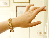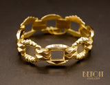 Bracelet Art Déco en or rose 750 millièmes composé d'un alternance de motifs tantôt godronnés, tantôt facettés. Fermoir invisible, dissimulé dans un petit maillon grâce à un système à cliquet sécurisé par une fine chaine.