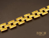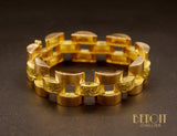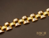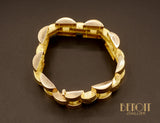Bracelet en or rose 750 millièmes composé de maillons en demi cylindre creux dont les maillons centraux en or jaune 750 millièmes sont ornés de gravures contrastant avec l'aspect de surface mat. Fermoir invisible dans un maillon grâce à un axe.