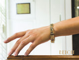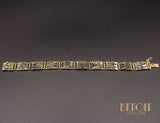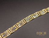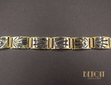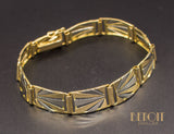 Bracelet de style et d'époque Art Déco en or jaune 750/1000e, composé de 10 maillons articulés ajourés et agrémentés d'élément de platine. Bijou élégant et délicat.