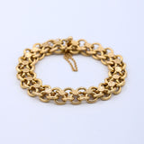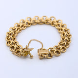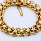 Bracelet en or rose 750 millièmes composé de mailles ovales alternée et imbriquée, surmontées par un motif feuille de Lotus, dont les fils extérieur sont martelés. Fermoir à cliquet avec huit de sécurité et chaine de sécurité.