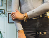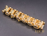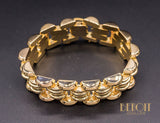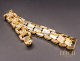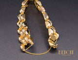 Bracelet de style Tank de la fin des années 1940 en or rose 750/1000e (18K) composés d'éléments en demi-disques articulés, géométriques et symétriques, tous creux. Système fermoir caché dans un motif et sécurisé par une chaîne. Bijou élégant, typique de la période Art Déco Moderniste. Poinçon hibou.