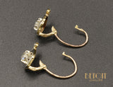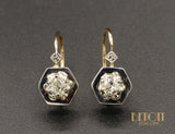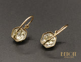 Paire de boucles d'oreilles anciennes en or jaune 750/1000e ornée chacune d'un diamant taille ancienne serti sur un chaton décoré en platine, surmonté d'un motif carré en platine. Système brisure étroite en or rose 750/e, convient pour un enfant.