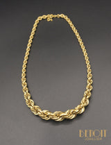Très beau collier en chute or jaune 750 millièmes datant des années 1950 se composant de mailles corde. Fermoir à ressort, sécurisé par une chaine de sécurité.