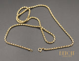 Chaîne en or jaune 750 millièmes constitué d'une maille orvet. La belle longueur et la maille facettée originale sera parfaite pour être portée seule ou avec un pendentif. Fermoir à ressort.
