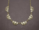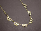 Collier draperie Art Déco en or jaune 18K, datant des années 1930. Les cinq éléments sont délicatement réalisés, s'harmonisant sur une chaîne fine.
