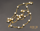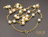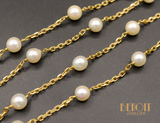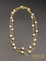 Collier en or jaune 585 millièmes, composé d'une alternance de chaîne maille forçat et de perles de culture.