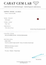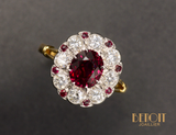 - Pierres : Rubis Ovale 2,24 cts ; Diamants ( 8) ~0,72 ct ; Rubis ronds ~ 0,18 ct