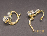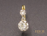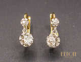 Boucles d'oreilles dormeuses en or jaune 750/1000e composées chacune d'un diamant taille ancienne coussin d'environ 0,25 carat serti sur chaton gaufré 8 griffes en platine, suspendu sous un second diamant taille ancienne d'environ 0,03 carat serti également sur un chaton gaufré 6 griffes en platine.