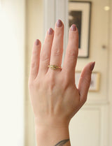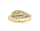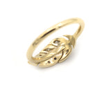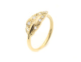 Bague Création Benoît Joaillier en or jaune 750/1000e représentant une plume, délicatement pavée de Diamants taille brillant en grains et millegrains. Corps de bague jonc.