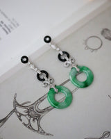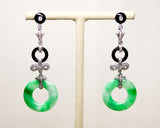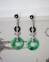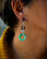 Paire de Boucles d'Oreilles Jade Onyx et Diamants