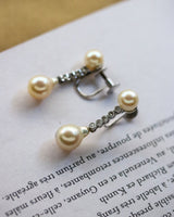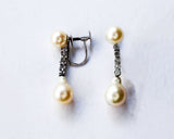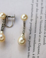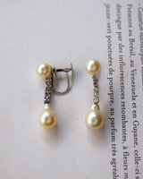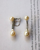 Paire de Boucles d'Oreilles Pendantes Perles, Diamants et Or Blanc