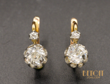 Boucles d'oreilles dormeuses en or rose et blanc 750/1000e ornée chacune d'un diamant taille ancienne d'environ 0,60 carat sur chaton gaufré ouvragé, surmonté d'un diamant taille ancienne d'environ 0,06 carat. Système de dormeuse.