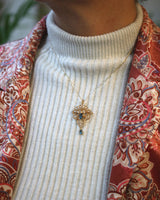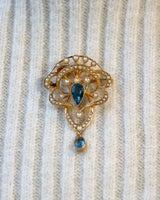 Pendentif Broche Or Jaune Perles Aigue Marine
