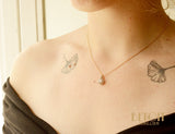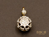 Pendentif en or rose 750 millièmes orné d'un diamant taille ancienne serti en étoile pour un effet trompe l'oeil au centre d'un chaton décoré de platine. Au dessus, un diamant serti sur chaton 4 griffe, plus simple, retient la bélière fixe. Réalisé à partir d'une boucle d'oreille esseulée. Vendu sur chaine sur demande.