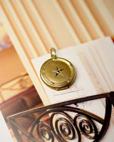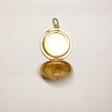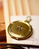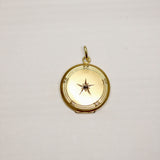 Pendentif ouvrant en or jaune et rose 750/1000e, de forme ronde, orné au centre d'un diamant taille ancienne dans un motif gravé étoile. Souligné en bordure, devant et derrière, de trois lignes. Bélière fine. Chaîne non fournie, sur commande. Bijou en bon état.