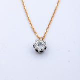 Pendentif solitaire en or blanc et rose 750/1000e, composé d'un diamant taille ancienne d'environ 0,60 carat serti sur huit griffes, suspendu sur une chaîne en or rose 750/1000e avec anneaux de réglage à 40 et 45 cm. Bijou récent.
