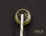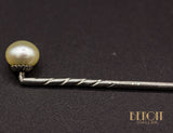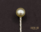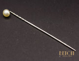 Pique en platine dont la tige est en partie torsadée, surmonté d'une perle fine ronde et blanche.