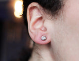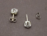 Boucles d'oreilles puces en or blanc 750/1000e, composées chacune d'un diamant taille ancienne d'environ 0,30 carat serti sur un chaton 6 griffes ouvragé. Système de tiges et papillons.