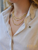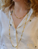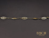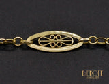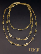 Grand sautoir en or jaune 750 millièmes composé de motifs filigranés assemblés par fins anneaux datant des années 1900. Multitudes de positionnement possible (colliers, bracelet...)
