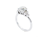 Bague Solitaire Création Benoit en or blanc 750/1000e, ornée en son centre d'un diamant coussin demi-taille de 2,06 carats J-VS2 certifié CGL, serti dans un chaton classique six griffes et épaulé de chaque côté d'un escalier pavé de diamants, inspiré de l'Art Déco. Corps de bague demi-jonc.