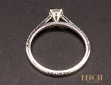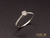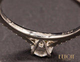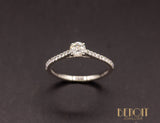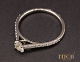 Bague solitaire en platine signée De Beers, modèle DB Classic, d'occasion, ornée en son centre d'un diamant taille moderne d'environ 0,30 carat estimé environ I-VS, serti dans un chaton quatre griffes, épaulé de chaque côté d'un pavage de diamants sur un corps de bague très fin. Gravé à l'intérieur de la marque De Beers et de la référence B55424. Bijou vendu seul.