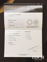 - Pierres : Diamant central 2,27 cts L-SI2 (CGL) / Diamants baguette 2x ~0,30 ct