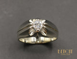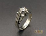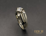 Solitaire Jonc en or blanc 750/e, de style dôme, dont les palmettes montent jusqu'au diamant d'environ 0.35 ct, serti en double griffes horizontalement et en griffes simples verticalement. Bijou mixte.