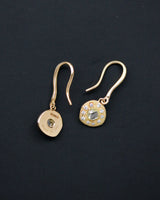 Paire de boucles d'oreilles pendantes signées De Beers modèle Talisman, en or jaune 750 millièmes, se composant d'un cercle orné au centre d'un diamant brut teinté, entouré de diamants taille brillant sertis clos et grains. Système col de cygne. Bijou numéroté C10701. Très bon état.