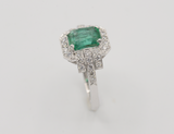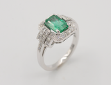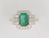 Bague Création Benoît Joaillier en or blanc 750 millièmes, dont le centre est serti d'une émeraude taille émeraude d'1,51 ct, sertie sur 4 griffes. De part et d'autre de la bague, des godrons, sertis de petits diamants et ouvragés de millegrain, accompagnent les palmettes. Corps de bague section carrée.