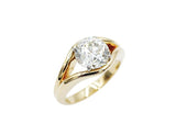 Bague Création Benoit Joaillier en or jaune 750/1000e, composée d'un anneau se divisant en deux sur un diamant rond taille ancienne certifié K-SI1 de 2,35 carats, serti sur un chaton d'or blanc 750/1000e.