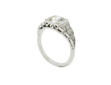 Bague Création Benoit Joaillier en or blanc 750/1000e, avec en son centre un diamant certifié 1,08 carat J VVS1, serti dans un carré par quatre triangles. Pavage diamants en fuite inspiré de l'Art Déco.