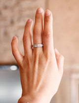 Bague jarretière, création Benoit Joaillier en or blanc 750/1000e. Diamants brillants sertis grains, bague pavée en demi tour.