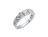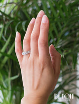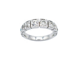 Bague Solitaire Création Benoit en or blanc 750/1000e, sertie sur la moitié de diamants taille ancienne décroissants, tous sertis dans carrés.