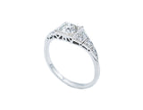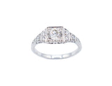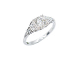 Bague Solitaire Création Benoit en or blanc 750/1000e, ornée en son centre d'un diamant taille ancienne de 0,66 carat estimé H-SI serti dans un carré épaulé d'escaliers en fuites pavés de diamants.