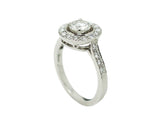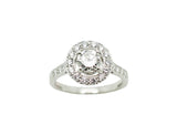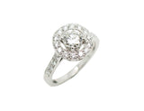 Bague création Benoit Joaillier, en or blanc 750/1000e avec en son centre un diamant rond taille brillant de 0,66 carat certifié au HRD F-VS2, serti sur quatre griffes. L'entourage simple rond est serti de diamants, tout comme le corps de bague, serti de quatre diamants de part et d'autre.