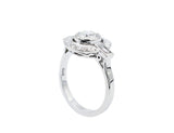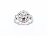 Bague sCréation Benoit Joaillier en or blanc 750/1000e, ornée en son centre d'un diamant rond certifié G-VVS1 de 0,93 carat, serti en clos, épaulé de deux baguettes de diamants serties également en clos et entouré de diamants.