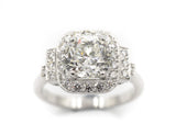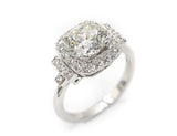 Bague création Benoit Joaillier, en or blanc 750 millièmes avec en son centre un diamant taille coussin de 1,96 ct certifié G-VS1, serti sur 4 griffes, accompagné d'un entourage de forme coussin et de petits escaliers de part et d'autre, le tout pavé de petits diamants pour un poids total de 0,48 ct. Travail de millegrain.