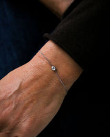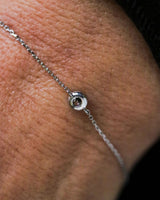 Bracelet solitaire Création benoit Joaillier en chaine maille forçat limée en or blanc 750/e, orné, en son milieu, d'un Diamant taille brillant serti dans un clos. Fermoir menotte en or blanc. Peut se porter avec le F1951-A en accumulation.