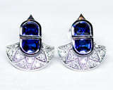 Paire de Boucle d'Oreilles Création Benoit Joaillier "Saphirs et Diamants Eventail"
