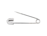 Pendentif Création Benoit Joaillier en forme d'épingle à nourrice ouvrable, à offrir à l'occasion d'une naissance. La tête de l'épingle est pavée de diamants avec un travail de millegrain. Vendue avec une chaîne en or blanc 750/1000e, terminée par deux anneaux pour y glisser l'épingle.