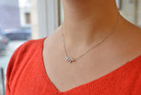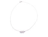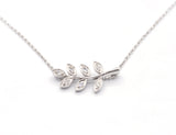 Pendentif en or blanc 750/1000e figurant une branche de laurier dont chaque feuille est ornée d'un diamant serti en grain. Travail millegrain. Motif monté sur une chaîne forçat limée or blanc 750/1000e.