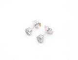 Boucles d'oreilles puces Création Benoît Joaillier ornées chacune d'un brillant estimé J-13 serti dans un clos millegrainé et décoré d'une gravure style Art Déco tout autour du serti. Système alpa Pour oreilles percées.