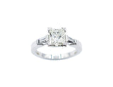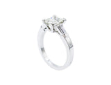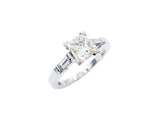 Bague Solitaire Création Benoit en or blanc 750/1000e, ornée en son centre d'un diamant taille princesse de 1,69 carat certifié K-VVS1 serti par quatre griffes, et épaulé de chaque côté d'un diamant taille baguette.