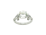 Solitaire en or blanc 750/1000e, serti d'un diamant taille ancienne de 1,74 carat estimé J/K-Si. De chaque côté de la pierre, le corps de bague est orné de motifs de fleur de lys sertis de deux diamants navette et quatre petits diamants ronds pour un poids total de 0,35 carat.