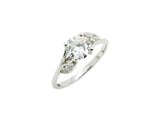 Solitaire "Végétal", création Benoit Joaillier en or blanc 750/1000e. Diamant central de 1,05 carat serti sur un chaton quatre griffes et épaulé de deux diamants navettes en serti clos.
